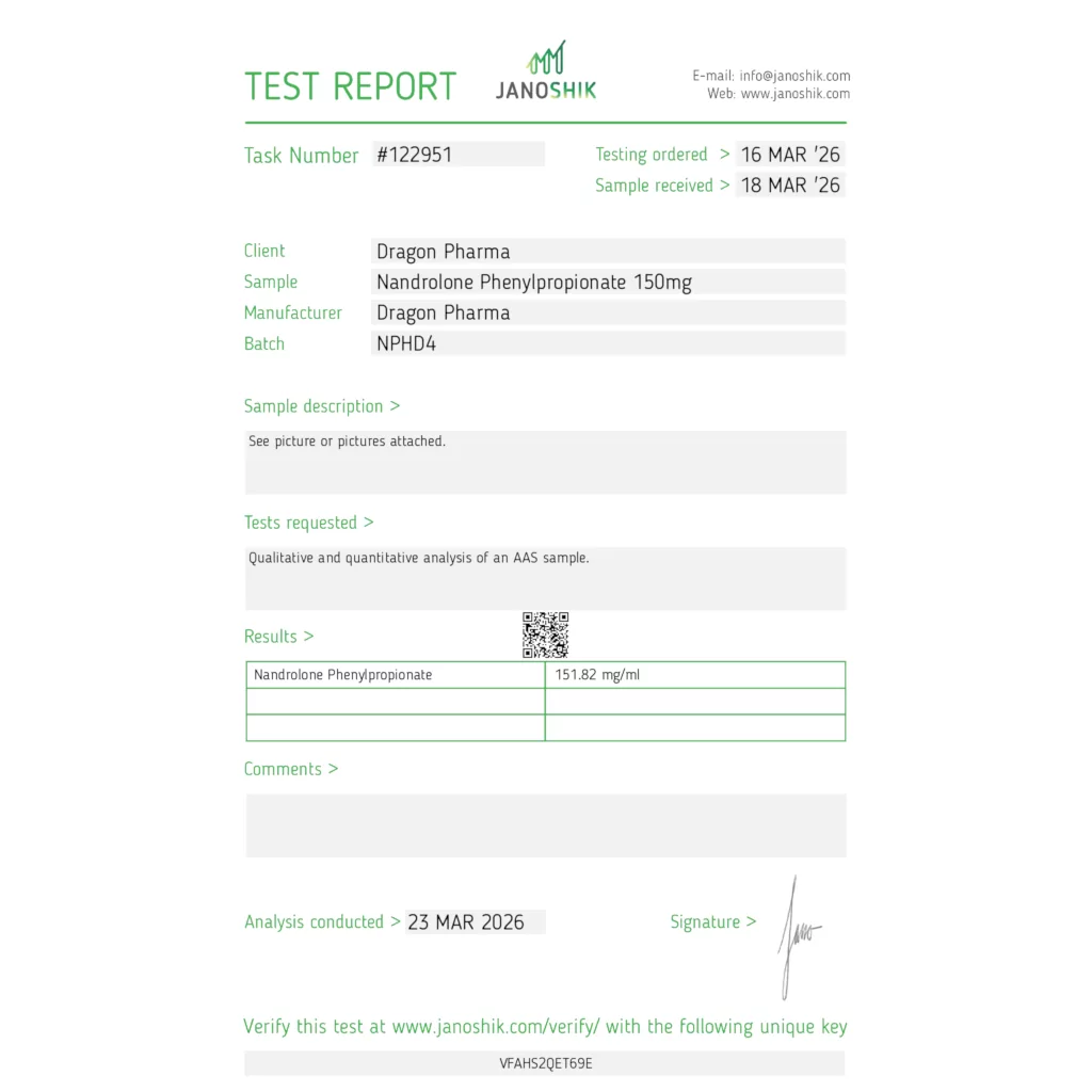 Dragon Pharma’s NPP 150 (Nandrolone Phenylpropionate) is a fast-acting injectable compound known for its precise dosing and consistent batch quality. As part of the Dragon Pharma injectable lineup, this product is manufactured with a focus on maintaining stable concentrations across production batches.