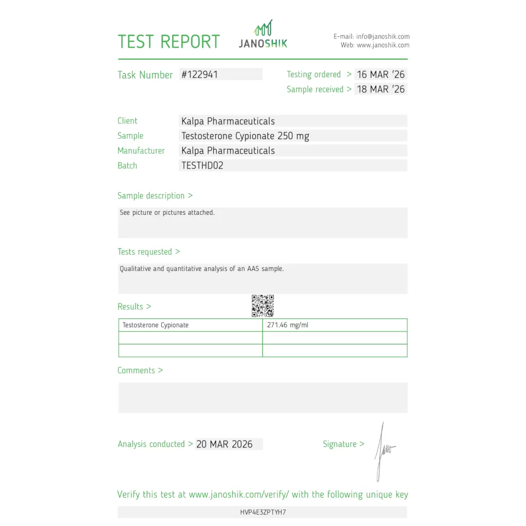 Kalpa Pharmaceuticals Testoxyl Cypionate 250 is a testosterone cypionate injectable formulation designed to deliver stable and consistent dosing. As a long-acting ester, maintaining accurate concentration is essential for predictable performance and batch reliability.